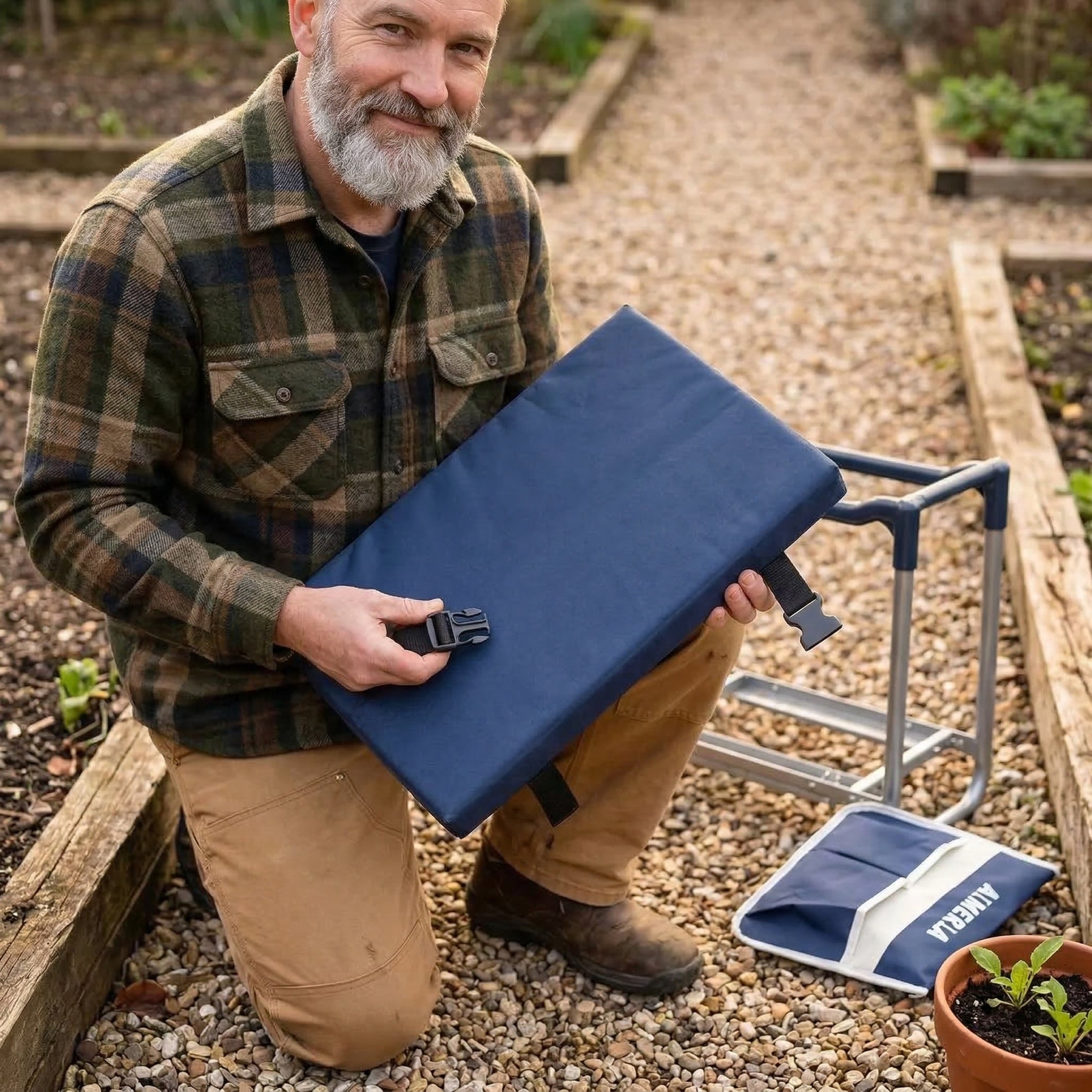 Protect your knees and enjoy gardening again with the Kindleaf Kneeler & Seat Support. This 2-in-1 design quickly converts from a comfortable kneeling pad to a sturdy garden bench, helping reduce strain on your knees and back. With a heavy-duty frame, thick cushioning, and easy fold design, it provides the support and comfort you need for gardening, DIY work, and everyday tasks.